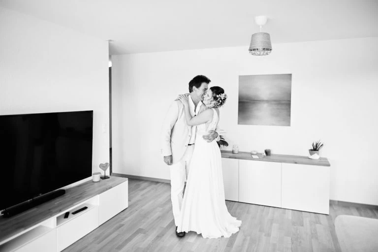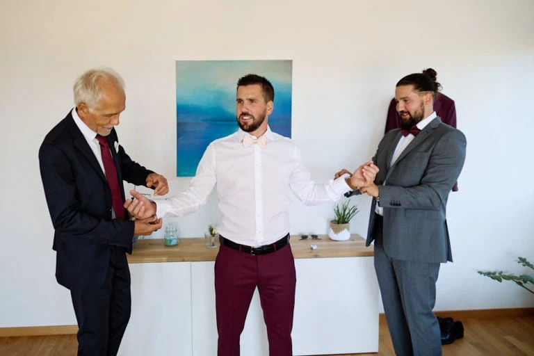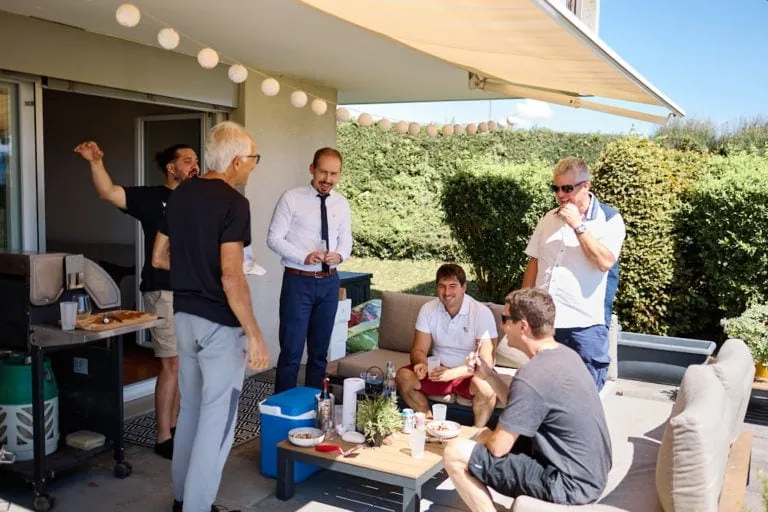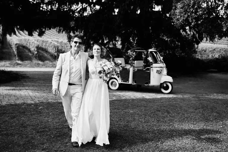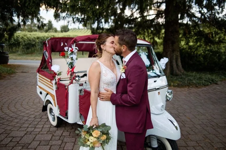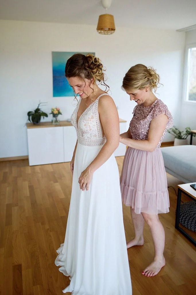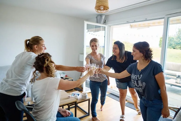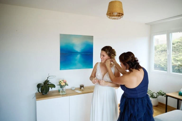 Lorsque je suis arrivé chez Olivier, l’ambiance était à la détente, barbecue, Mölkky, Mario Kart étaient au programme ! Olivier s’est habillé et à laisser la place à Tatjana et ses copines ! Coiffure, bouteille de champagne et il est enfin le moment d’enfiler la robe de mariée. Le papa de Tatjana est ensuite venu chercher la mariée en Tuctuc, surprise totale !