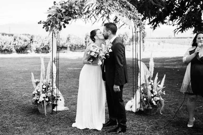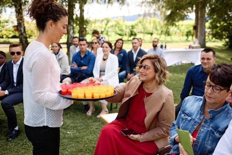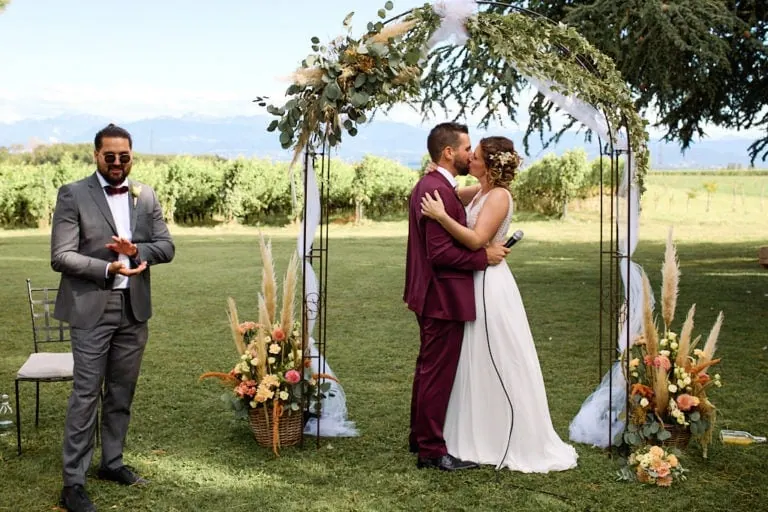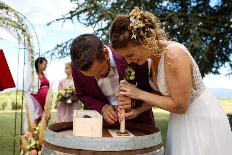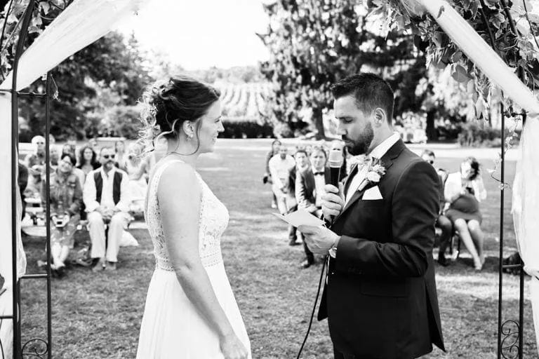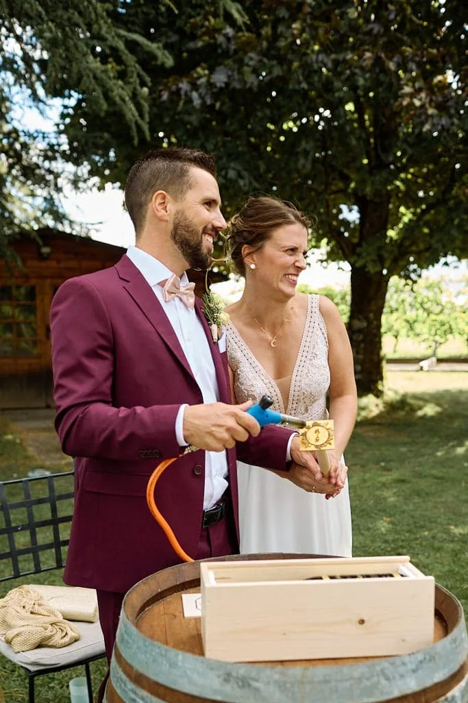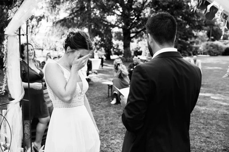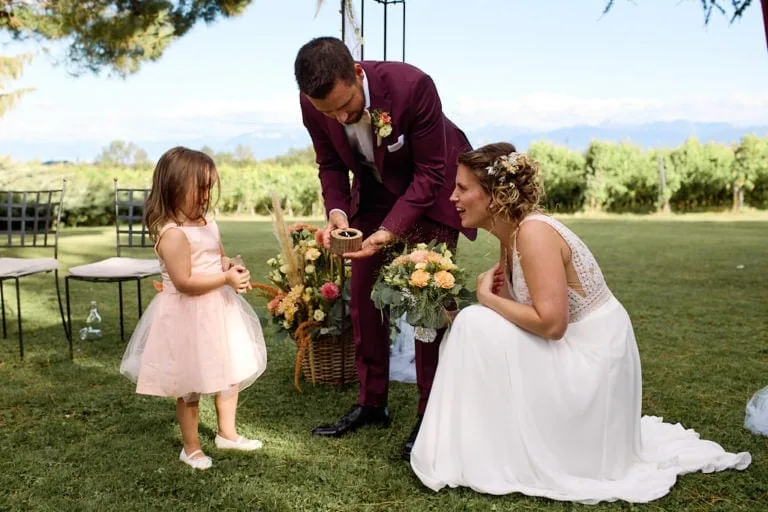 La cérémonie laïque s’est déroulé dans les jardins du Domaine de la Capitaine à Begnins, un moment riche en rire et en larmes de bonheur ! Les mariés ont préparé un coktails pour leurs invités avant d’échanger leurs voeux et les alliances qu’ils ont confectionnées eux même avec l’aide de Mélanie.