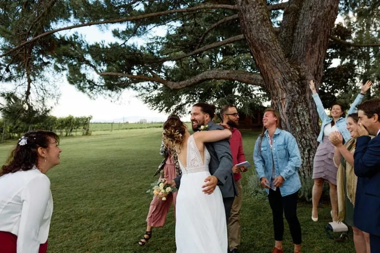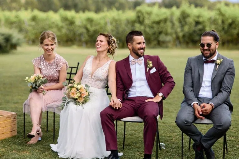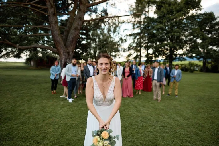 Nous avons enchaîné avec les traditionnelles photos de groupes, l’apéro avec le lancer de bouquet ou hommes et femmes étaient invités à le rattraper (j’adore) !