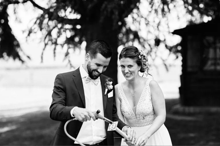 Alors que les amis et les familles de Tatjana et Olivier cherchaient leurs places pour la soirée, nous en avons profité pour faire quelques photos de couple dans les jardins du domaine. Les mariés ont ensuite rejoint leurs invités pour une magnifique soirée grillade rythmée par quelques animations !