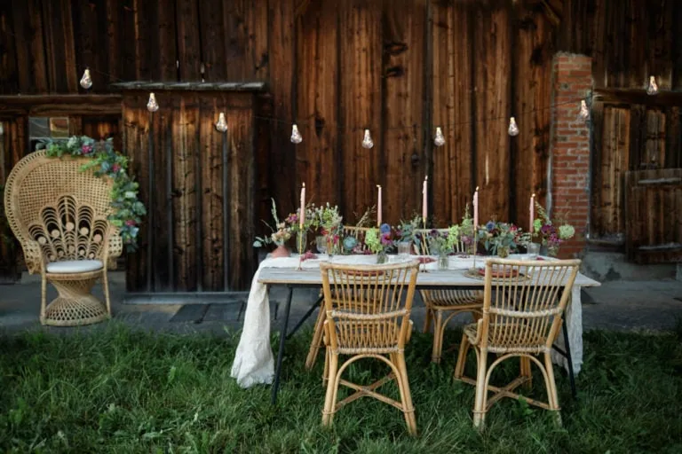 Une grange, une table, des fleurs et une « mariée » pour une séance inspiration mariage champêtre