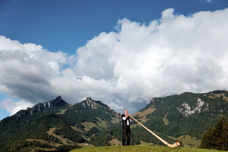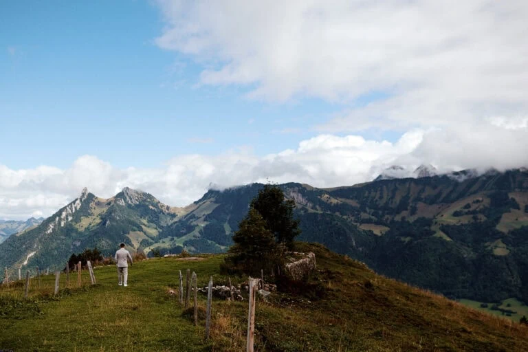 Enney, août 2025. On est en pleine campagne gruyérienne, à deux pas des Préalpes fribourgeoises, au pied de la Vudalla, sur les terres des parents de Sarah. Le genre d’endroit où tu poses ton appareil photo n’importe où et t’as déjà une image, les montagnes, la nature font le boulot rien qu’en existant.
