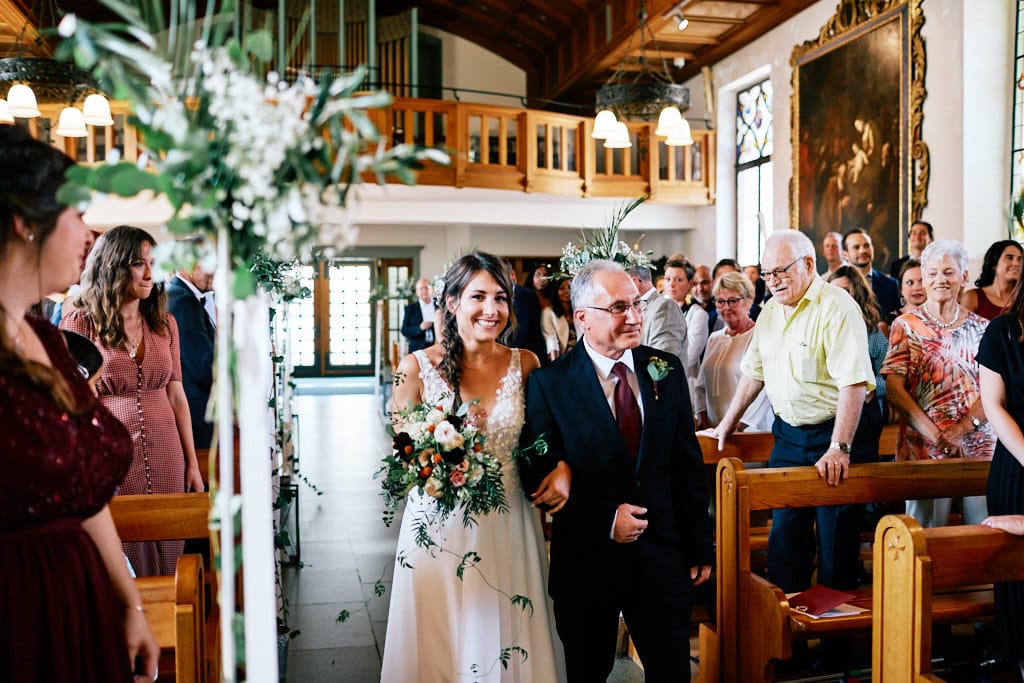 La cérémonie religieuse s’est déroulé en l’Eglise St-Jean en Basse-Ville de Fribourg, une magnifique Eglise qui était vraiment bien décoré par la fleuriste. Les témoins ont chacun pris la parole pour des discours émotifs tout les deux très bien dosés en humour ! Ainsi, la cérémonie était légèrement chargée en émotions et j’ai réussis à photographier quelques larmes !!