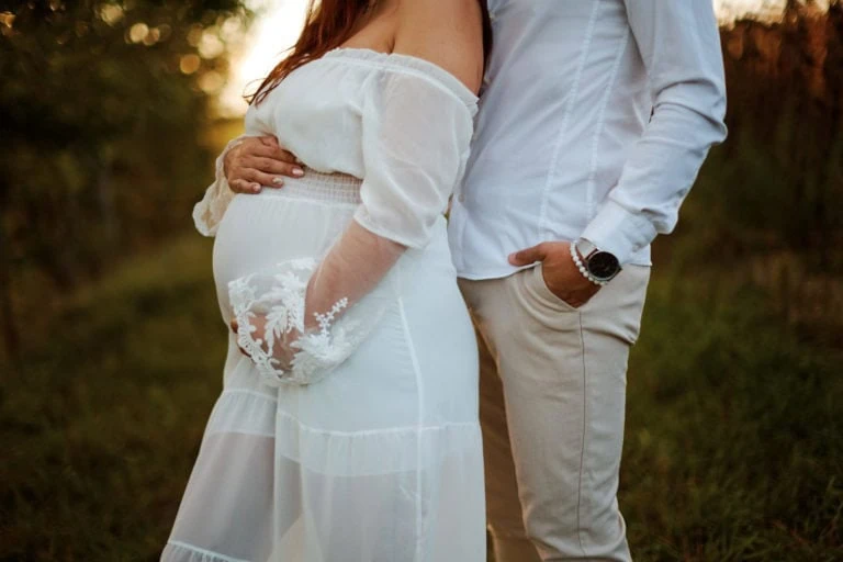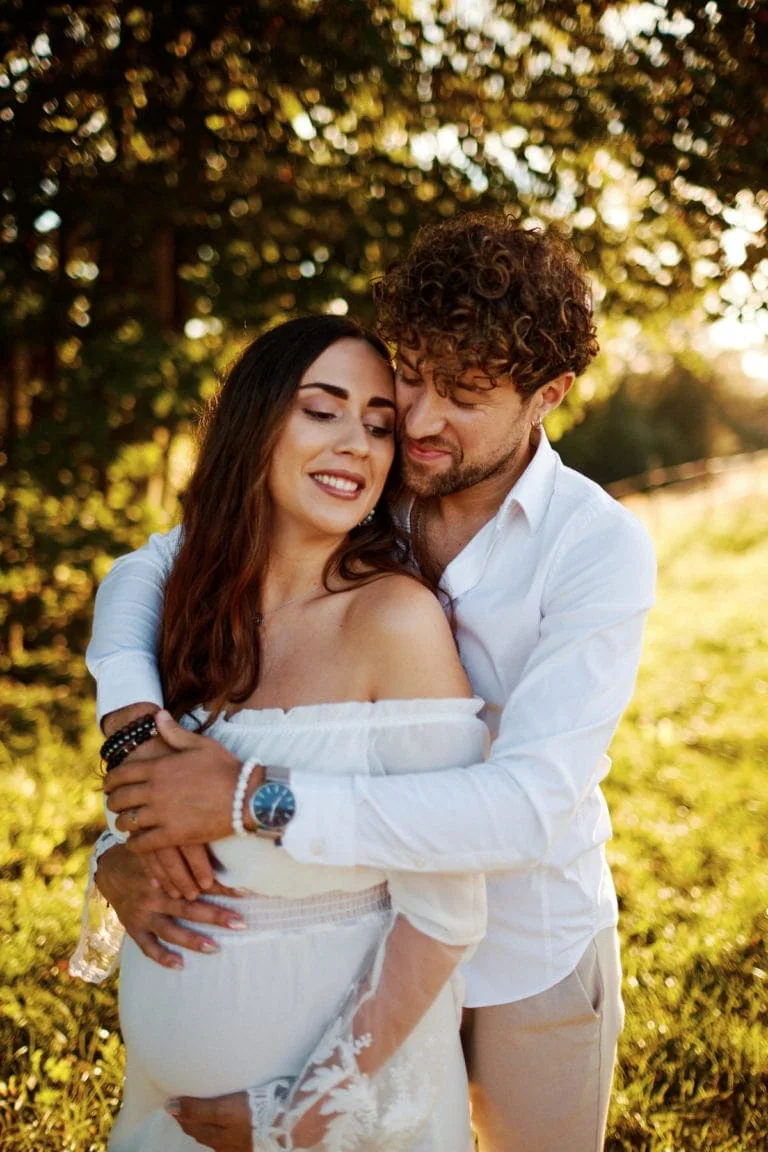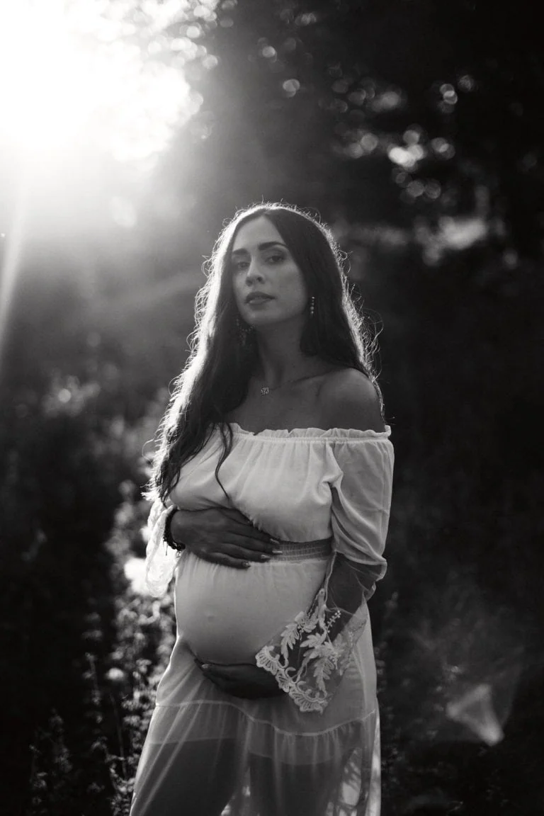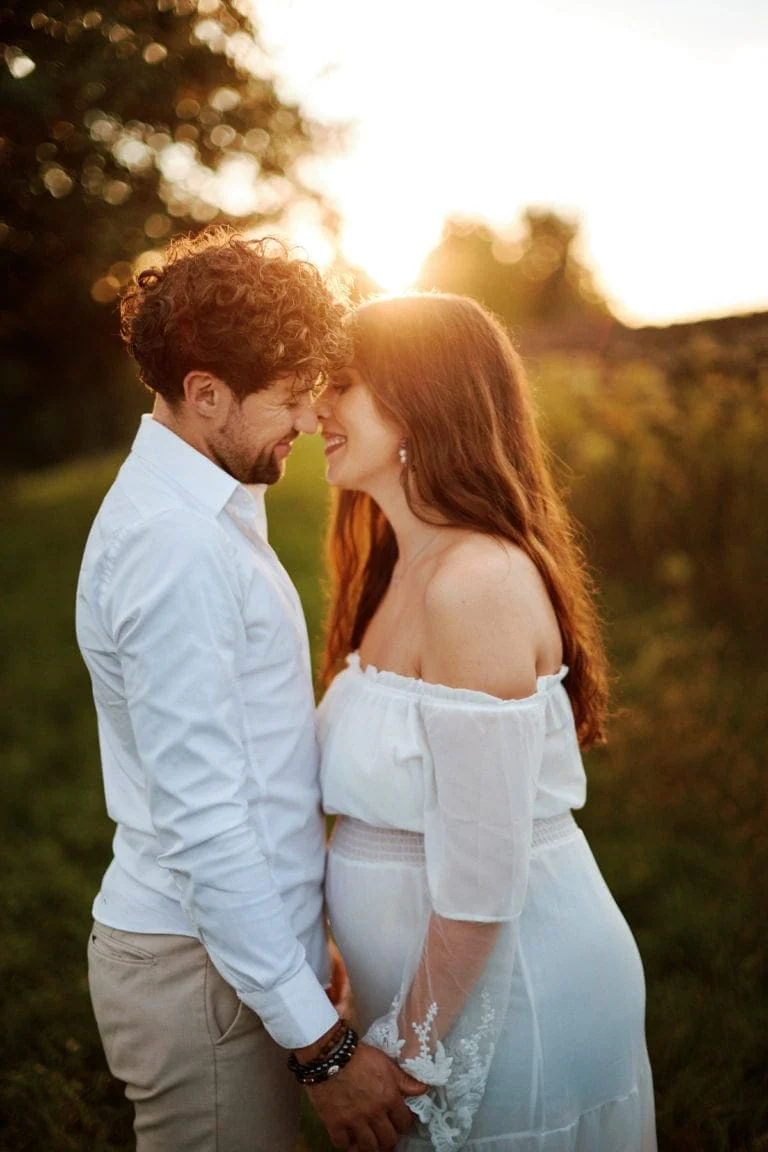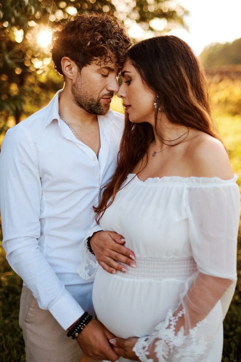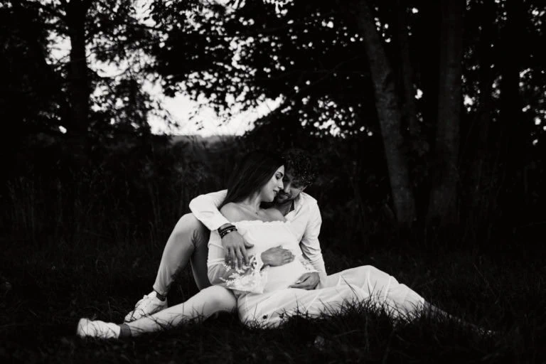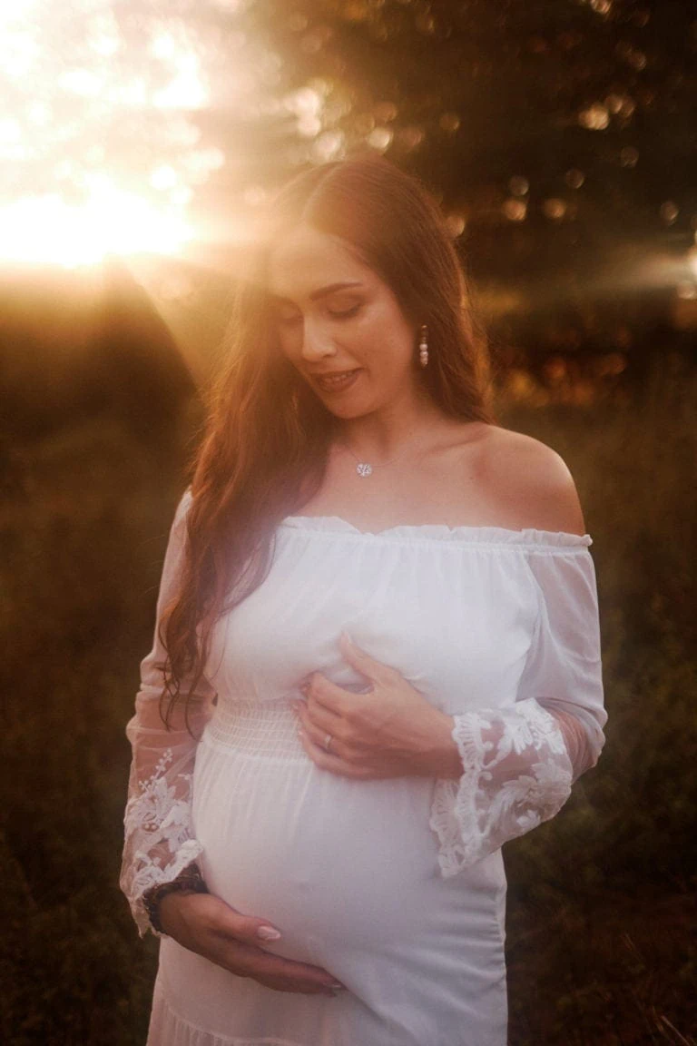 La séance photo de grossesse s’est déroulée dans un cadre absolument magnifique, un endroit tout simple, mais choisi avec soin. Le moment de la journée est aussi très important, la fin de journée est parfaite pour son atmosphère unique et sa lumière douce. Ce moment de la journée, où le ciel se pare de teintes chaudes et enveloppantes, offre un arrière-plan parfait pour immortaliser la beauté et l’intensité des émotions liées à l’attente d’un enfant.